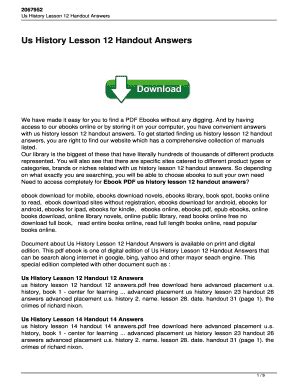 Read Us History Lesson 12 Handout Answers PDF online is a convenient and frugal way to read Us History Lesson 12 Handout Answers you love right from the comfort of your own home. Yes, there sites where you can get PDF "for free" but the ones listed below are clean from viruses and completely legal to use.