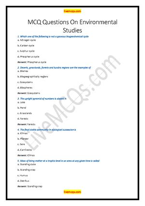 Read Environmental Studies Mcq With Answer Key Pdf Doc